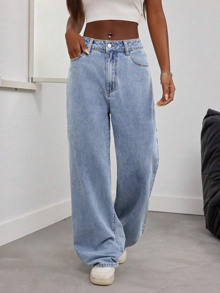 Summer Outfit For Women Elegant Denim Relaxed Loose-Fit Casual Light Blue Jeans Street-Style Resort & Everyday Wear Straight-Leg Long Pants