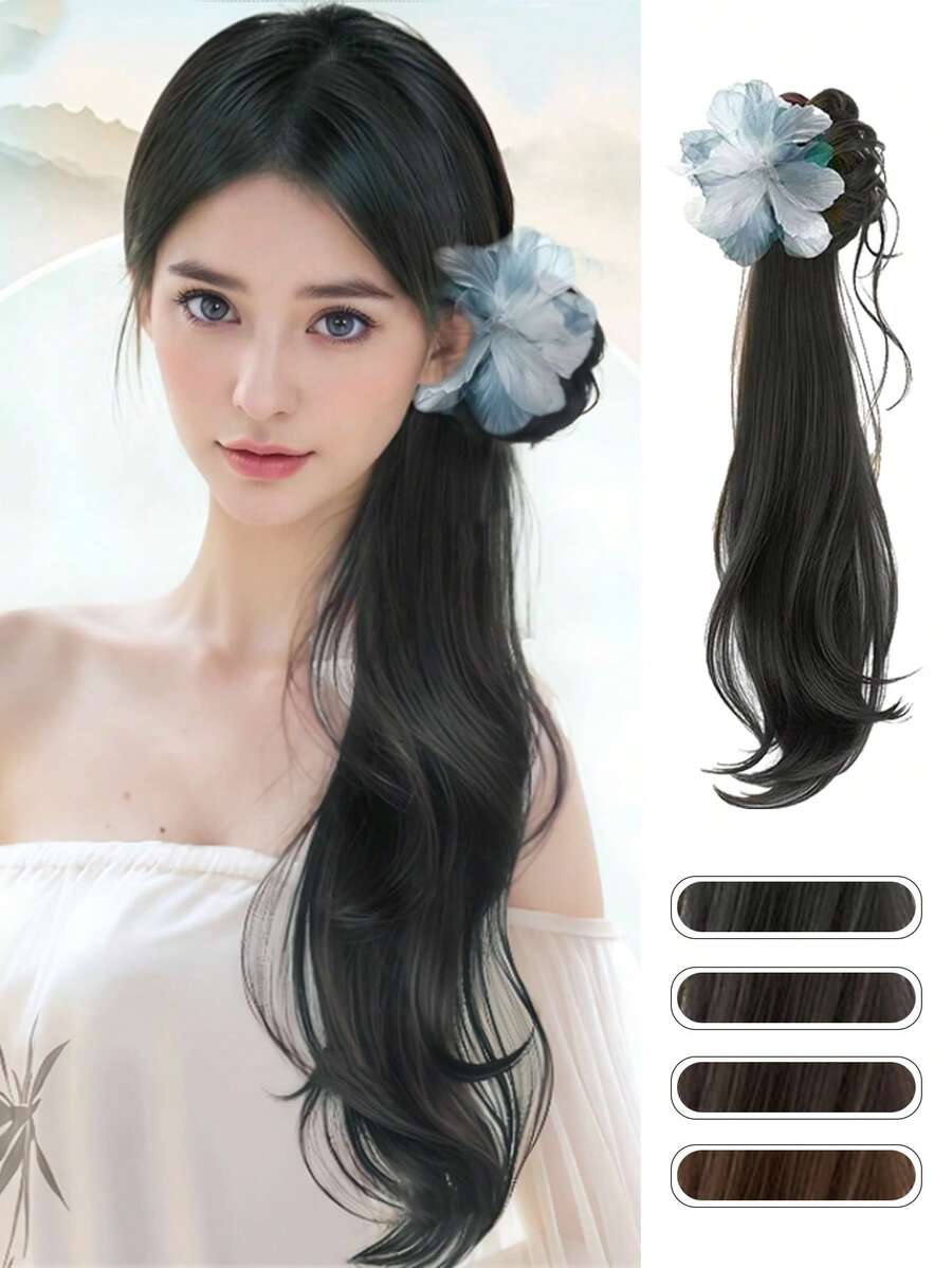 1 Piece Of Chinese Floral Faux- Wig Bun Hair Clip For Women, Slouchy Atmosphere, Loose Low Ponytail, Clip-On Hair Claw, Hair Bag For Going Out Simple Style. Fashion Hair Accessories Beauty Claw Clips Long Curl Wig