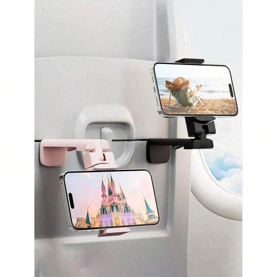 1-Piece Perilogics Universal Airplane Phone Holder - Multi-Directional 360° Rotation Hands-Free Mount For In-Flight Viewing - Pocket-Sized Travel Essential With Secure Grip - Airplane Accessory Must-Have, Long-Haul Flight Companion, Holiday Travel Gadget, Stocking Stuffer Idea, Frequent Flyer Gift