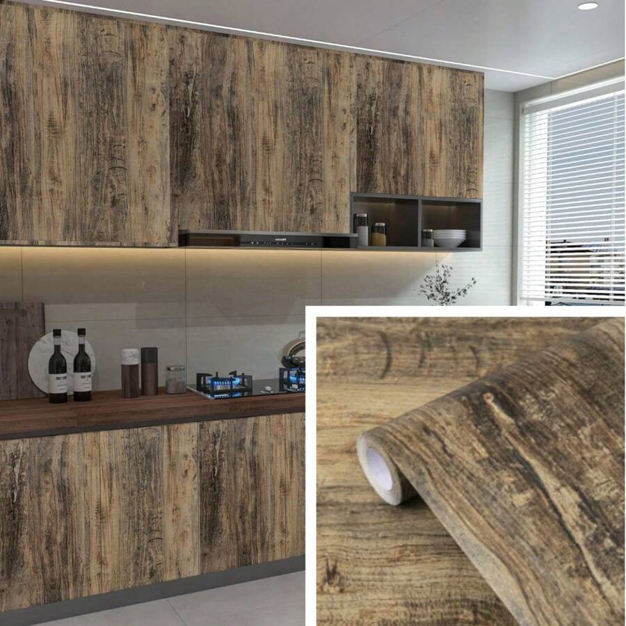 1 Roll Vintage Wood Grain Wallpaper Brown Self-Adhesive Peel-Off Wallpaper Vinyl Contact Paper Kitchen Cabinet Backsplash Countertop Furniture Renovation Bedroom Background Wall Home Decor Wall Sticker DIY Easy Installation Removable Wallpaper 45CMX500/300/100CM