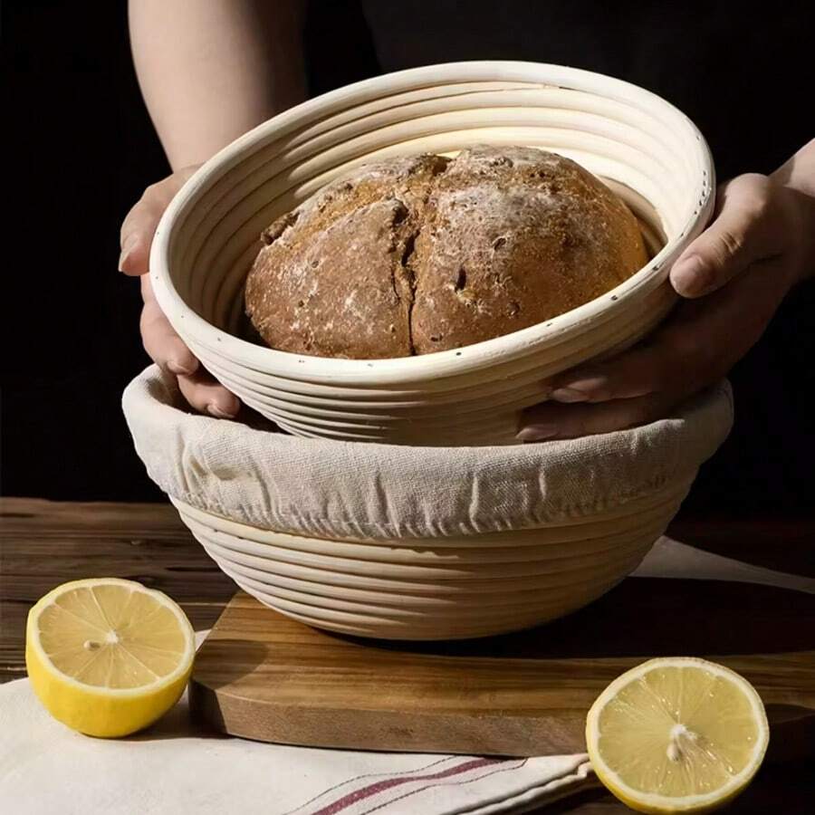1 Set Boho Style Bread Proofing Basket With Proofing Liner - 9.05 Inch Round, Food Contact , For Sourdough And Yeast Baking - Kitchen Baking Homemade Bread Fermentation Tool, Baking Tool, Multi-Purpose Proofing Bowl