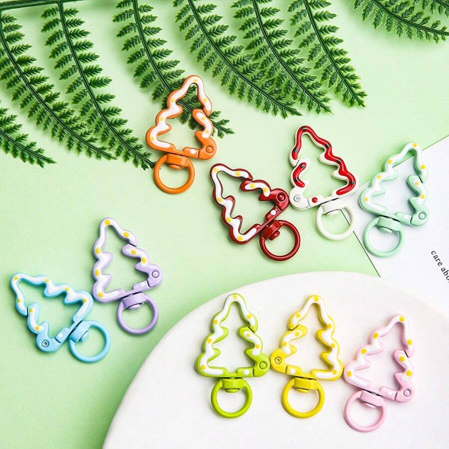 10pcs Creative Hand-Painted Christmas Tree Enameled Spring Clasp Keychain Charms, Colorful Open Spring Clasp Jewelry Accessories