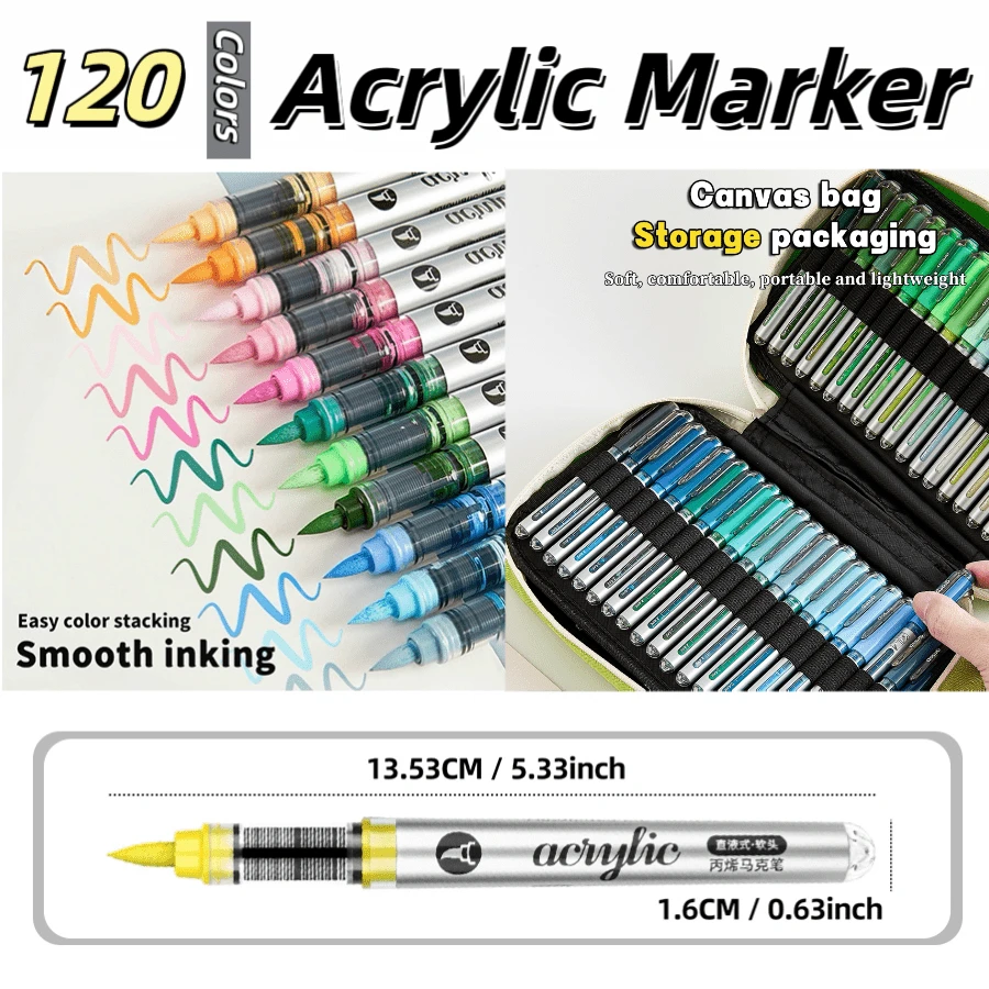 120-Color Direct-Liquid Acrylic Marker Pens With Brush Tips, Portable Carrying Case, Suitable For Wood, Canvas, Stone, Rock Art, Glass, Ceramics, Student Painting, Art & Craft DIY