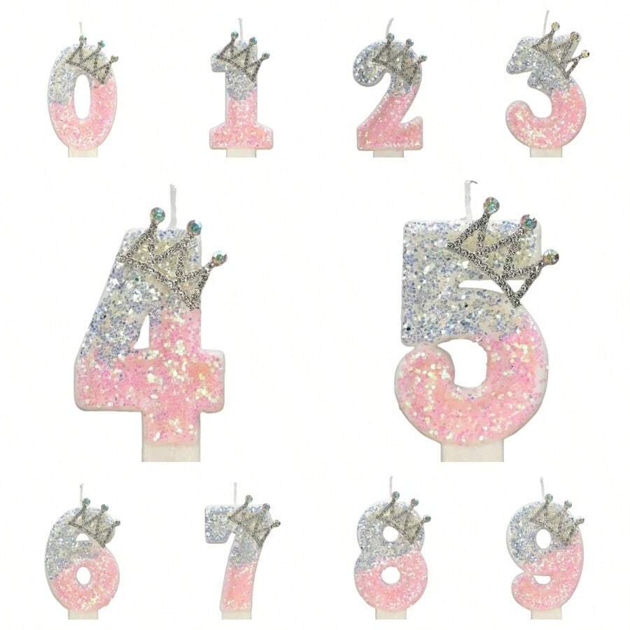 1pc Glitter Birthday Number Candle, 3D Design Cake Birthday Party Wedding Anniversary Celebration Supplies, Glitter Blue Crown Theme Birthday Decoration, Happy Birthday Party Supplies, Number 0 1 2 3 4 5 6 7 8 9