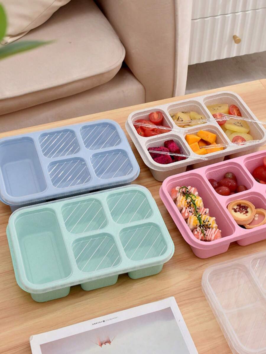 1pc Lunch Box, Portable 5-Compartment Food Sealed Container With Lid, Leak Proof Food Storage Box, For Back To School, Class, College, Office, Camping And Picnic, School Supplies, Kitchen Organizers And Storage, Kitchen Accessories