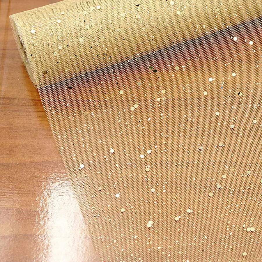 1pc Metallic Gold Sequin Mesh Fabric Roll, 275cm Length Shiny Ribbons Netting For Wedding, Tulle Skirt, Gift Wrapping, Party Decor (Vintage Gold)