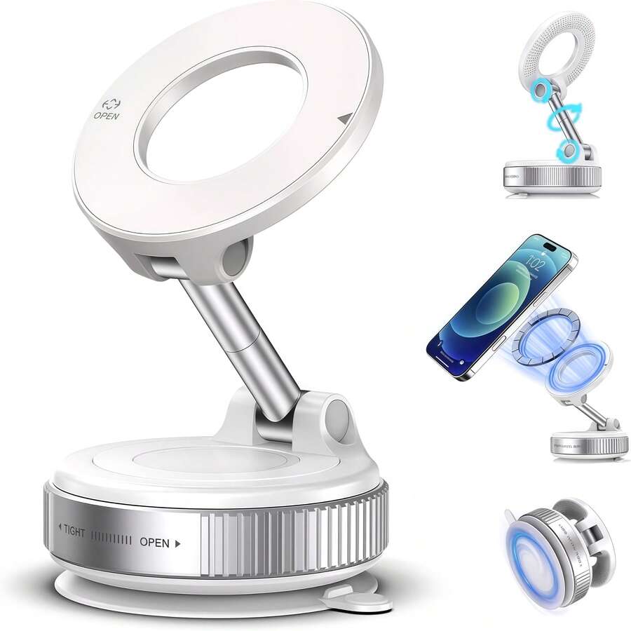1pc N52 Super Strong Magnetic Phone Holder, Multi-Functional 360° Rotatable Foldable Magnetic Phone Stand, Suitable For Car, Business Trip, Travel Photography, Yoga, Home Streaming, Desk, Airplane, Cruise, Compatible With All Phones, Includes Magnetic Ring, Magnetic Pad, And Instructions (Multiple Models And Colors Available)
