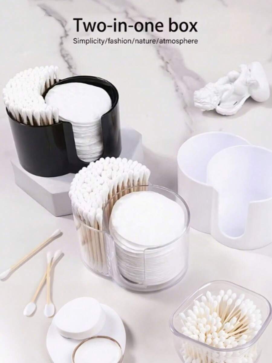 2-In-1 Cotton Swab & Makeup Pad Storage Box, Dual Compartment Bathroom Organizer, Space-Saving Vanity Tidy, Desktop Cotton Swab & Makeup Remover Pad Holder, Dual Hole Round Powder Puff Storage Box, Suitable For Bathroom, Bedroom, Dining Room, Living Room, Back To School (Random Style & Color)