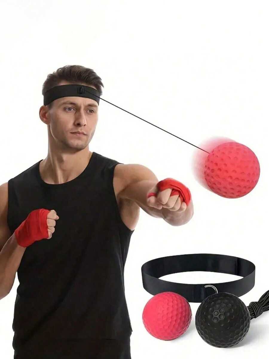 Adult & Teenage Boxing Reflex Ball Set - PA Nylon Reflex Ball With Adjustable Headband, Boxing Gloves And Punching Bag - Improve Hand-Eye Coordination, Speed And Reaction Time, Red/Black Color, Ideal For Boxing Training And Fitness, Boxing Accessories, Boxing Equipment, Boxing Gloves, Boxing