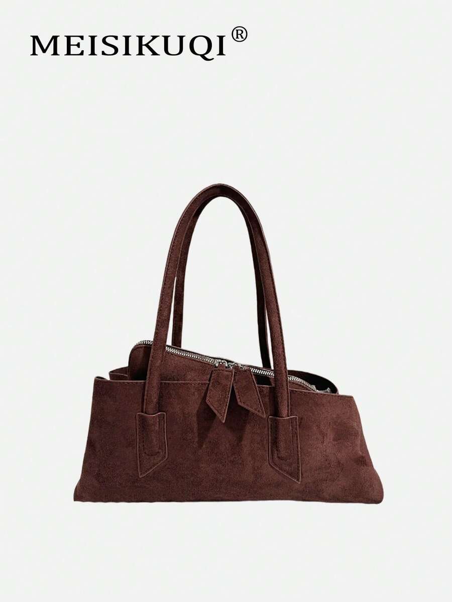 2025 New Retro Niche Design Asymmetrical Geometric Suede Handbag, Large Capacity Commuter Versatile Shoulder Underarm Bag, Fashionable And Tote