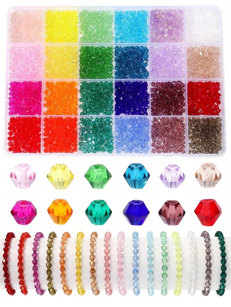 2400pcs 4MM Faceted Glass Beads Set Artificial Crystal Cut Beads Briolette Rondelle Crystal AB Beads Spacer Beads For Jewelry Making Bracelet Rings Necklace DIY 15/24 Colors