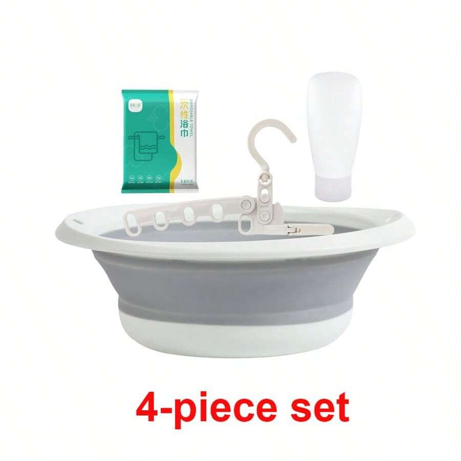 4pcs/Set Portable Foldable Silicone Wash Basin, Travel Clothes Hanger, Disposable Compressed Bath Towel, Squeeze Travel Bottles