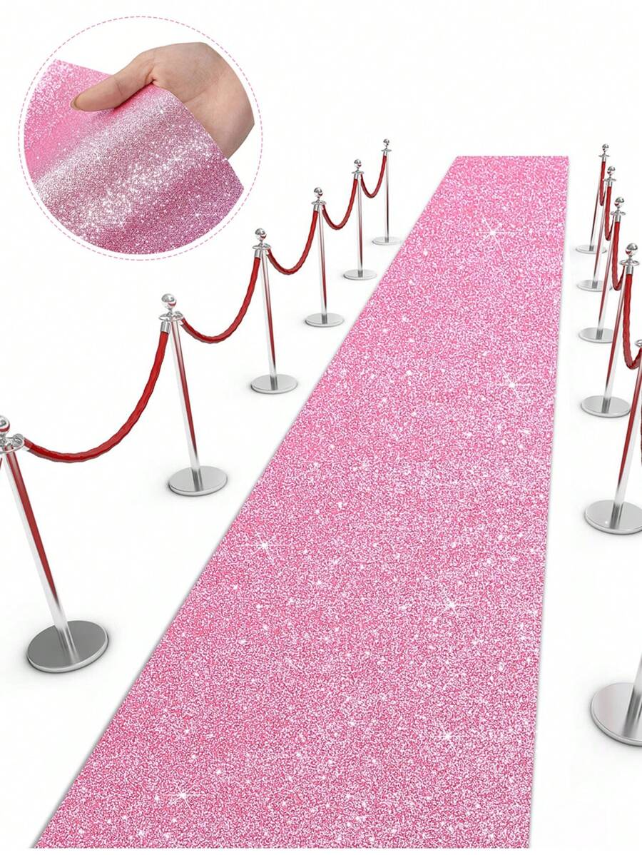 5m/8m Champagne Pink Sequin Carpet, Suitable For Wedding, Wedding Decoration, Festival Birthday Party Ceremony Decoration, Event Stage Background Decoration, Store Opening Entrance Decoration, Resort Party Decoration, Room Decoration, Home Decoration, Outdoor Party Decoration, Background Decoration, Wedding Party Supplies, Etc. Long Carpet Can Be Cut To Size.