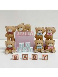 1pc Soft Rubber Bear Cake Topper, Pink Blue Brown, Birthday Cake Decoration Props, Block Letters Happy Birthday, Sitting Tummy And Standing Bears, Cute Bear Cake Decoration Accessories Ins Style Suitable For Bear Theme Party, Birthday Party, Baptism, Gender Reveal Party, 100 Days, 1st Birthday Party Cake Decoration.(Please Use With A Tray) Sprinkles Cake Decoration Candy,Sparkle Toppings For Ice Cream, Cupcakes, Donuts, Truffles, Macarons, Waffles, Lollipops, Fondant & Dessert Tables,Round Small Granular Balls,DIY Party Supplies For Birthdays, Weddings, Valentine's Day, Mother's Day Bakery Sugar Pearls
