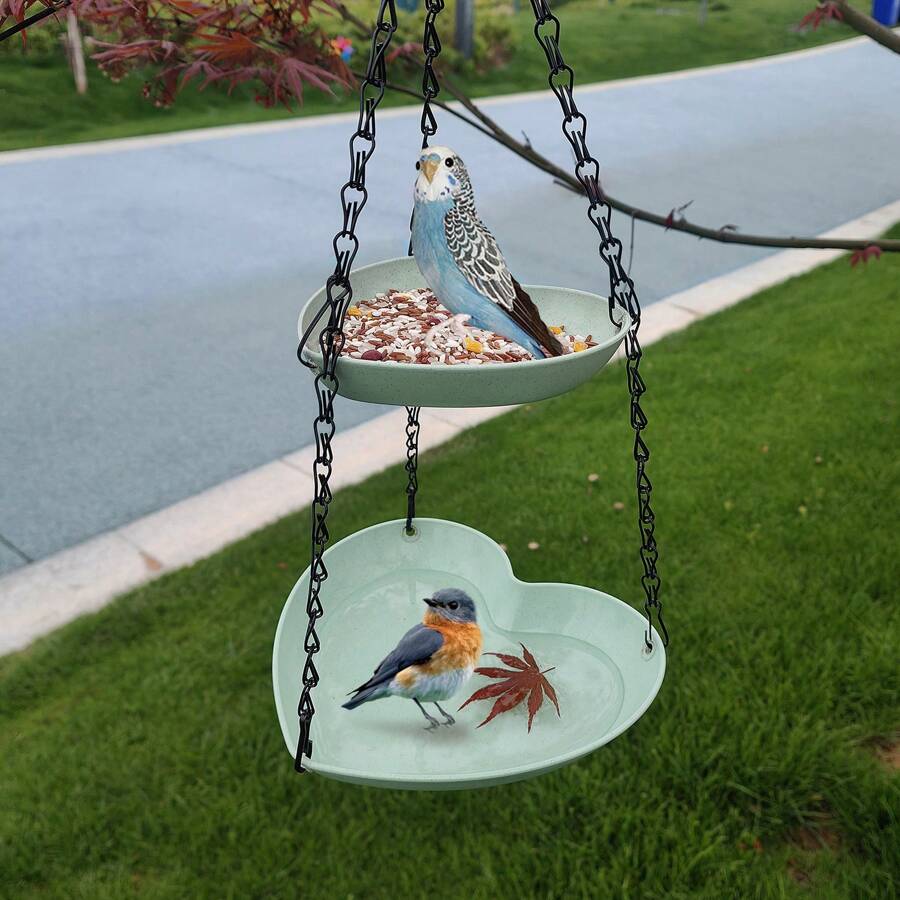 806 Dual-Layer Heart-Shaped Bird Feeder With Three Chains, Plastic Material, Double-Layer Hanging Tree Bird Feeder, Multi-Color Optional, Rainbow Bird Bath, Hanging Feeder, New Bird Bath, Outdoor Balcony Garden Bird Feeder, Water Feeder, Bird Bath, Garden Courtyard Decoration Dual-Purpose Style