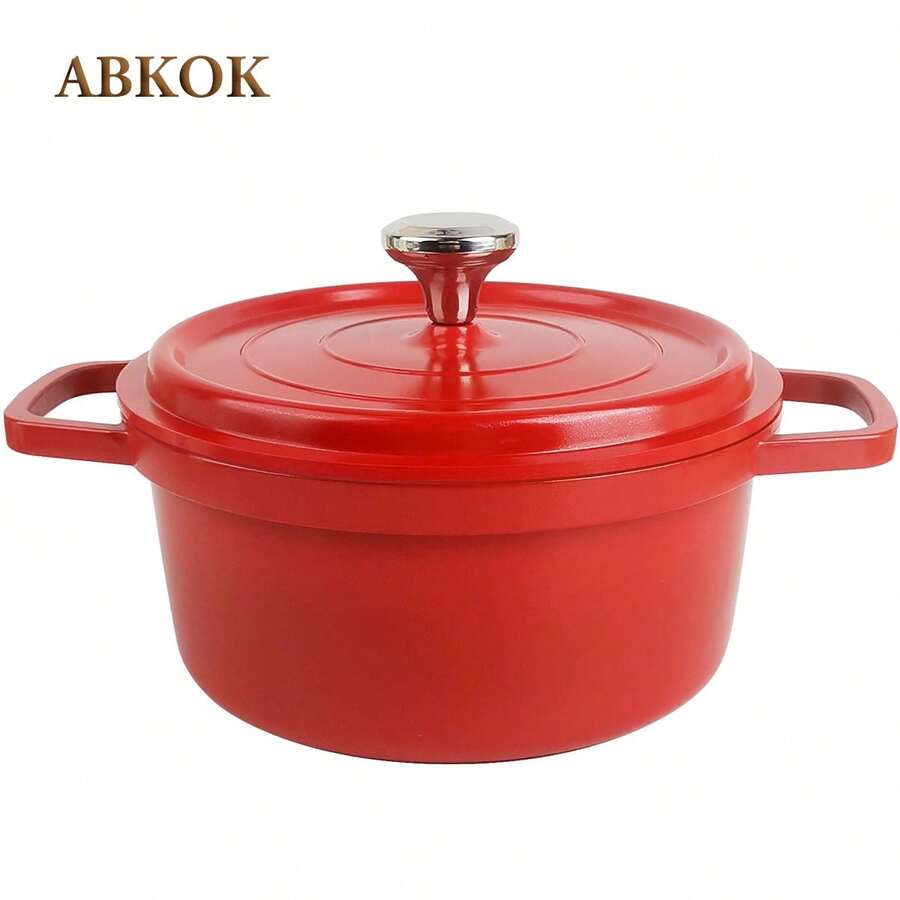 ABKOK 20cm/24cm Red Aluminum Cooking Pot With Lid, Stovetop Multifunctional, Non-Stick & Durable, Kitchen Utensil For Home/Camping