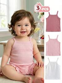 Vintaside Kids 3pcs Baby Girls Jacquard Fabric Camisole Vest. Sleeveless, Refreshing To Wear Outerwear, Cute And Fashionable, Macaron Pastel Color Palette, Sweet And Brightening, Highly Versatile. Soft And Comfortable Fabric, Cute Casual Style Suitable For Spring/Summer Outings, Outdoor Play, Vacation, Daily Wear, And Travel