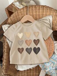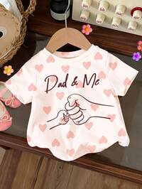 HappikinsSHEIN Vaaleanpunainen, sydämensydäminen, söpö ja hauska isä ja minä❤ Graafinen printti, vauvan tytön rento minimalistinen lyhythihainen pyöreä kaula-aukkoinen t-paita, sopii kevät/kesä arkikäyttöön, vanhemman ja lapsen valokuvaus, retki, loma, juhlapyhät, isänpäivä, kotiinpaluu, koulun alku, kevät- ja kesätyttöjen asut, helppo mukavuus, kesäinen rento toppi, tyylikkäät pienet tytöt, tytöille tarkoitettu ihastuttava kirjaingrafiikkapaita, kevät- ja kesämuoti, rento tyyli, rento tyylikäs, chill vibe -asut