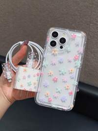 1 Set Of Phone Case And Charger Head, Pink Color Block Leopard Print, Text & Graphics Pattern, Soft Textured Phone Case With Full-Coverage Anti-Drop Design, High-End Protective Phone Case Compatible With IPhone 17/17 PROMAX/17PRO/AIR/16/11/13 Pro/15 Pro/15/13 Pro Max, 16PROMAX Compatible With Iphone 14/13/12 Anti-Fall Material, Full Coverage Applicable To 17Pro Max Charging Cable Protector, Anti-Bending, Anti-Cat Bite, Silicone Phone Case, Gift For Women, Valentine's Day Gift