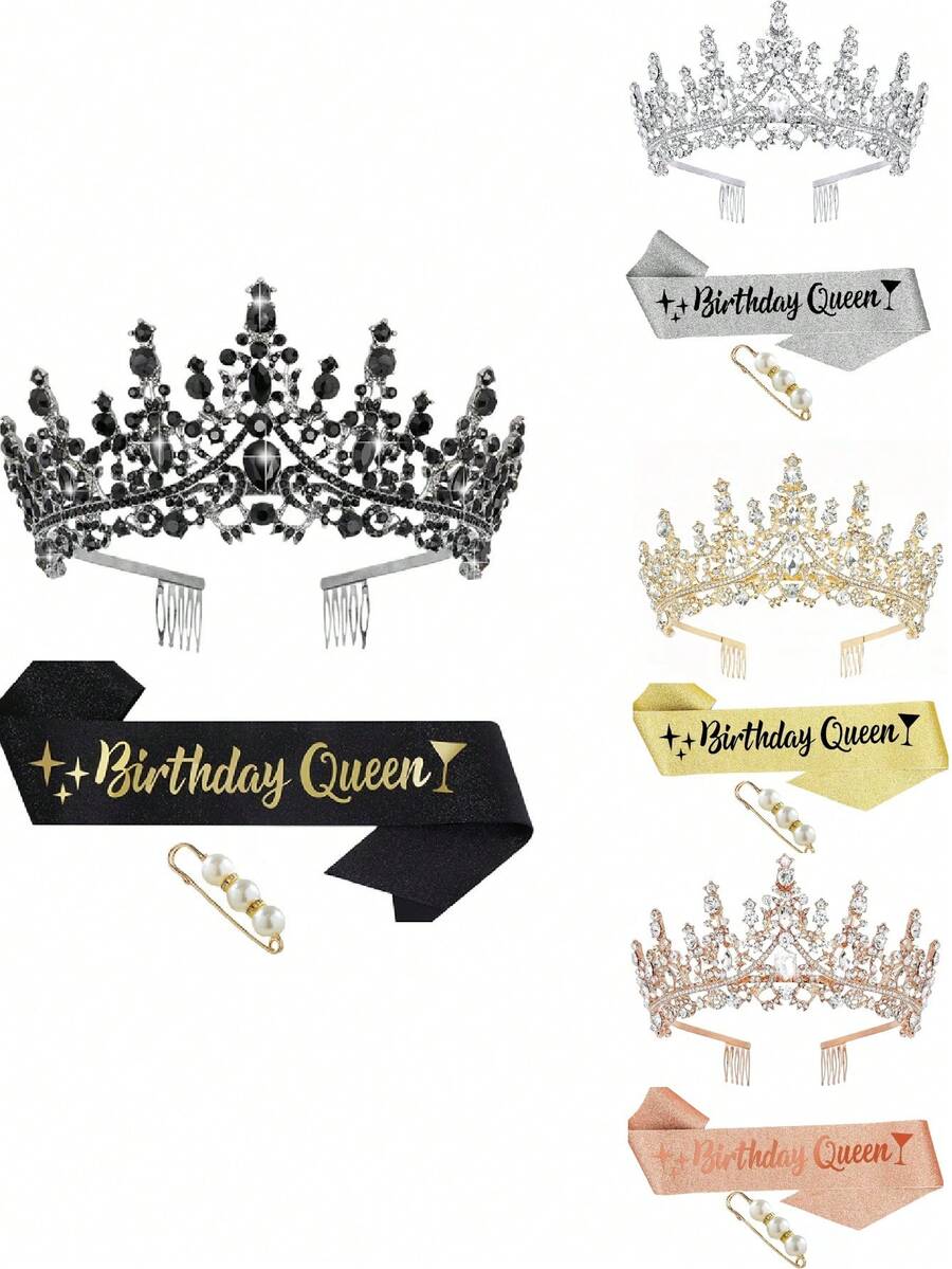 Birthday Queen Sash And Crown Gold Birthday Sash For Women Birthday Crown Adult Woman Crystal Birthday Tiaras For Princess Crowns Birthday Decoration