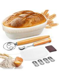 Cirelle11pcs Proofing Basket Sourdough Bread Making Kit, Includes 24oz Starter Jar, 2 Proofing Baskets, Proofing Tracker, Thermometer, Metal Scraper And Accessories For Homemade Bread Baking, Oval And Round Proofing Basket Set, Yeast Fermentation Jar Set, Complete Bread Making Tool Kit, Basket Gift Set, Mother's Day Gift, Valentine's Day Gift, Housewarming Gift, Birthday Gift