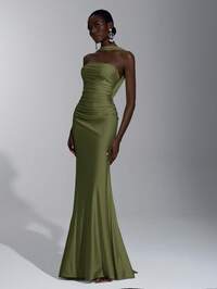 ElitaraElitara Elegant, Romantic, Sexy, Minimalist Design Bodycon Dress With Elastic Knit, Spaghetti Straps, Open Back, Fitted Waist. Fashion, Influencer Style, Suitable For Holidays, Parties, Weddings, Bridesmaids Green #2 Bestseller