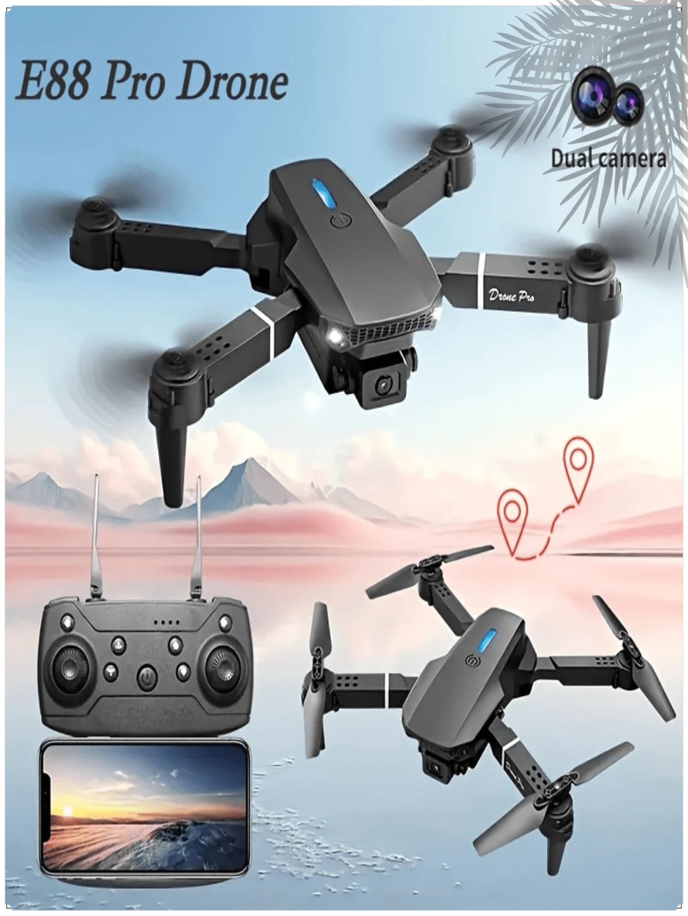CASRRA The E88 Smart Camera Drone Features Real-Time Image Transmission With Dual Cameras. It Has One-Touch And Landing Functions. This Is A Foldable Remote-Controlled Drone Toy, Making It An Ideal Photography Drone For Beginners. It's A Great Gift Choice For Christmas, Halloween, And Thanksgiving.