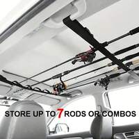 2pcs Adjustable Lightweight Aluminum Fishing Rod Holder Rack, Can Hold 7 Rods, Quick Installation Without Drilling, Ceiling Mount Storage Rack With Non-Slip Hook And Loop Straps, Secure Grip, Space-Saving Design, Suitable For SUV, Truck, Van, RV, Small Truck For Outdoor Fishing Trips