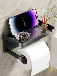 1pc No-Drill Toilet Paper Holder, Hygienic Drawer Roll Paper Rack, Wall-Mounted Bathroom Tissue Holder With Phone Stand, Plastic Material, Dual-Purpose Bathroom Storage Rack Suitable For Tissues And Essentials, Tissue Holder, Wall-Mounted Bathroom Shelf, Bathroom Accesssories, Bathroom Deccor, Room Decor, Valentine's Day, Bathroom Sets