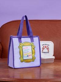 FRIENDS X SHEIN 1pc Cute Cartoon Pattern Printed Insulated Lunch Bag, Keeps Food Warm Or Cold, Picnic Bag, Large Capacity, Can Hold Lunch Boxes And Drinks, Suitable For Picnics, Camping, Travel, Home Use, Suitable For Families, And Students,Friendship