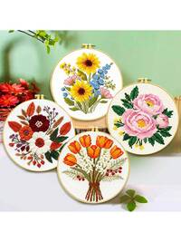 1 Set Floral Cross Stitch Kit, Includes Peony, Tulip, Daisy Patterns, 11CT For Beginners, With Embroidery Frame, Scissors, Threader, Ripper, Fabric, Thread, Home Decor Creative Gift #8 Bestseller