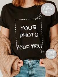 Customized Photo T-Shirt, Your Photo, Anniversary Photo Gift, Bridesmaid T-Shirt, Girlfriend Gift, Add Your Own Text And Images (Couple Photo/Girlfriend Photo/Family Photo/Selfie/Pet Photo/Friend Photo/Party Photo) To Design Your Personalized T-Shirt, Suitable For Everyday Wear/Wedding Party/Company Event/Family Gathering, Holiday Gift, Mother's Day, Father's Day, Anniversary, Valentine's Day, Christmas, Thanksgiving, New Year Patterns
