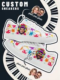 [Music Festival Theme] Women's Custom Photo And Name Low-Top Sneakers, PU Upper Panel Shoes, Color Splash Print, Lightweight Comfortable Fashion Unisex Design