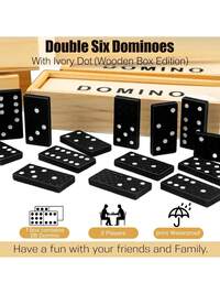 28pcs/Set Dominoes Set, Interesting Table Game For Party And Outdoor Leisure Activities,First Year Activity Table,Challenge Games,Dino Key Holder,Games,Domino,Dominoes,Games,Domino,Dominos 1/2/5 Sets, 28pcs Checkerboard Game, Domino Tile Game Set, Push And Pull Fun Tabletop Domino Toy, Suitable For Outdoor Camping And Travel, Wooden Box Packed Black Domino Chessboard Game, Durable And Easy To Store, Reusable, Various Playing Methods, Classic Tabletop Game, Applicable For Game Night, Chess Room, Singles Party