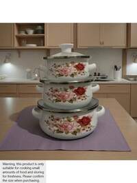 3pcs Enamel Coated Cookware Set: Milk Pot With Dual Handles, Enamel Bowl, Mini Pot, Soup Pot, Ramen Bowl, Small Hot Pot, Thick Enamel Pot, Mini Saucepan With Dual Handles For Induction Cooktop & Gas Stove, Lard Jar, Milk Pot With Lid, Dual-Use 3pcs Multi-Functional Enamel Pot Set, Including Soup Pot, Stewing Pot, Tableware, Non-Stick And Easy To Clean, Capacity 16cm/18cm/20cm, Compatible With Gas, Electric And Induction Cooktop, Suitable For Family, Restaurant, Home Kitchen, Holiday Gathering, Cooking, And As A Gift For Family And Friends