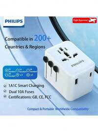 VoyageGoods storePHILIPS Universal Travel Adapter SPS1001A/93, Lightweight & Portable, Fast Charging, Upgraded USB Charging Power, 2-In-1 Design, Suitable For UK, US, Europe, Japan, Australia And Other Countries, EU C-Type Plug (220-240V)