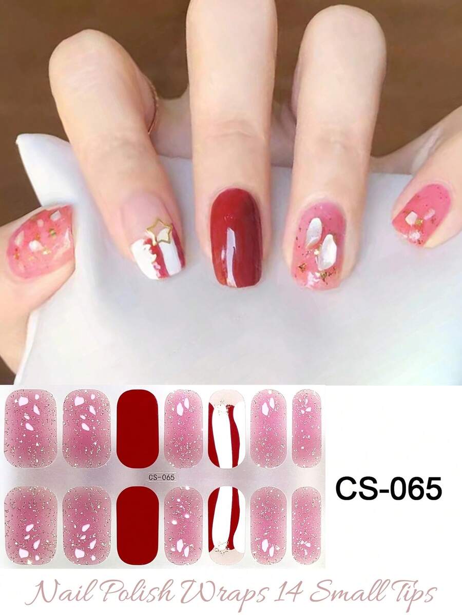 Full Wrap Nail Polish Stickers 1 Sheets Set Summer Nail Art Wraps Self-Adhesive Nail Polish Stickers Waterproof Long-Lasting Fashionable Gel Nail Strips DIY