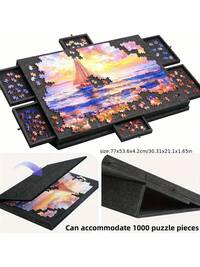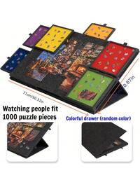 Portable Puzzle Mat, Thick Felt Board And Stand To Hold 500 Pieces, With 4 Sorting Drawers, 4 Random Color Puzzle Bowls, Adjustable Angle Stand, Perfect For Puzzle Anytime, Ideal For Weekend Leisure, Felt Puzzle Board, Great Gift For Father's Day, Mother's Day, Christmas, Suitable For Friends And Family#8 Bestseller