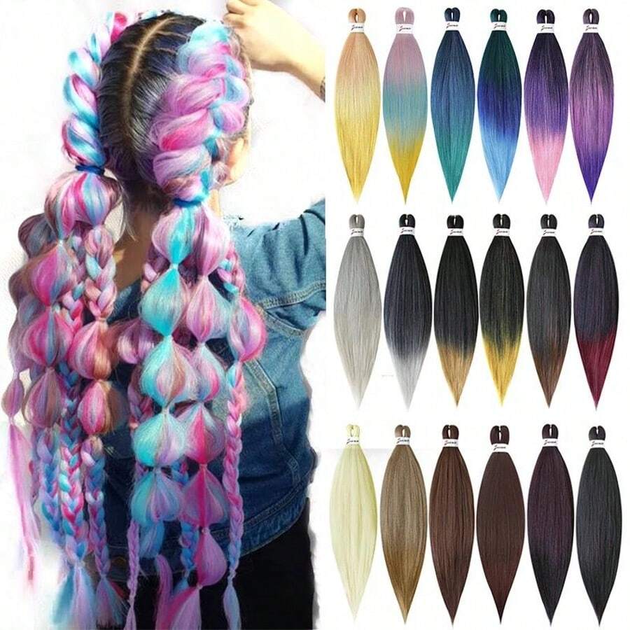Halloween Pre Stretched Braided Hair Extension 24 Inch Braid Without Knot Box Professional Synthetic Crochet Natural EZ Braid Burn Black Wine Hair Band For Halloween And Christmas New Year Carnival Music Festival