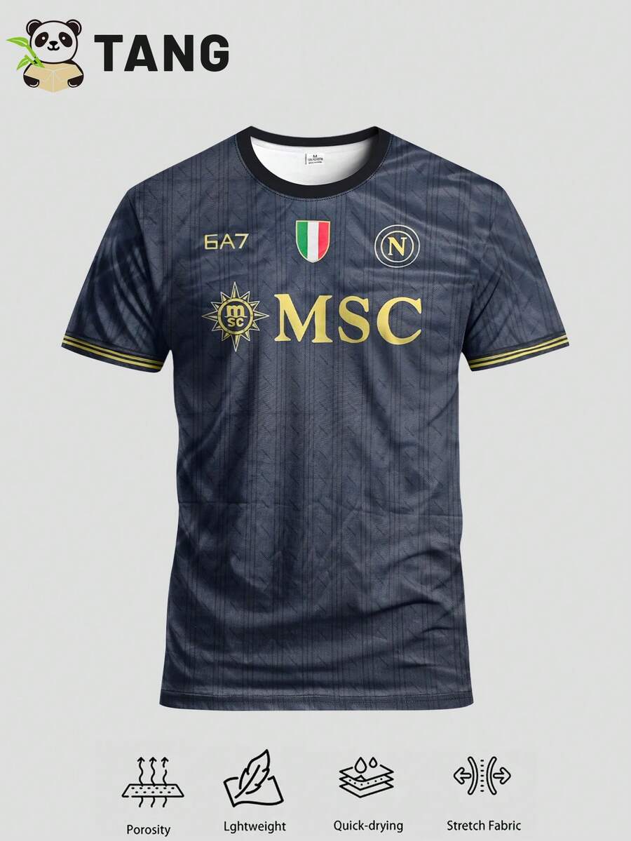 Italian Naples Style Men Football Jersey & Crew Neck Comfortable Sports Top, Suitable For Match, Football Training, Casual And Holiday Wear, Gift