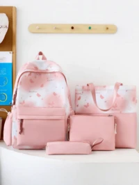 3pcs Set Backpack, Fashion Style, Durable Nylon Material, Adjustable Shoulder Straps, Lightweight & Comfortable, Printed Patchwork Backpack, Zipper Closure, Polyester Lining, Includes Pencil Case, Hand Wash Recommended, Suitable For School And Travel, Back To School Essential 3-Piece Kids Fashion Backpack Set With PU Leather, Glitter & Butterfly Decor, Durable & Breathable Padded Straps, Plush Keychain, Lunch Box That Can Be Attached To Backpack, Ideal For School, Travel, Hiking, Camping, Great Gift For Back To School, Christmas, New Year, Birthday #8 Bestseller