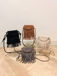 1 бр. Модерна винтидж чанта с пискюли, многофункционална, лека, от полиуретан, за през рамо, регулируема дължина на презрамката, налични в множество цветове, отговаря на основните нужди за съхранение, подходяща за пътуване, пазаруване и други поводи, идеален избор за подарък за Хелоуин, Деня на благодарността, Коледа #3 Най-продавани