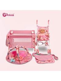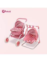 Anivia Brand Doll Stroller, At Least 7 Variants Of Doll Strollers Including Doll Carrier, Doll Pram, Doll Seat, Doll Bed, Doll High Chair, Suitable For 11-18 Inch Dolls, Toys For Children 3+ Years Old, Equipped With Quiet Wheels And Comfortable Handle, Ideal Children's Holiday Gift, Birthday Gift And Christmas Gift