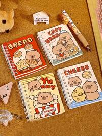 4 PCS Cute Capybara Spiral Notebook - Adorable Cartoon Cover, Soft Colors, Spiral Binding, Ideal For School, Office, Journaling, Sketching, And Study Supplies, Fun Design, Durable Binding, Student Stationery