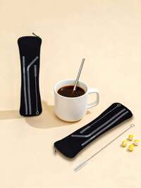 1PC Cutlery Storage Bag,Reusable Flatware Storage Pocket,Black Portable Tableware Bag Outdoor Travel Camping Cutlery Pouch Storage Bag Flatware Tableware Dinnerware Carrying Case For Knife, Fork, Spoon, Tea Spoon, Chopsticks, Bottle Opener, Straws,For Outdoor Travel Camping Office(Flatware Not Included) Christmas For Holiday Gift Giving
