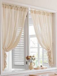 2pcs White Polka Dot Pom Pom Jacquard Sheer Curtains, Rod Pocket Top, Easy To Hang, Quality Polyester Fabric, Soft & Lightweight, Translucent, Machine Washable, Rustic European Style Home Window Decor, Suitable For Small Windows, Bedroom, Living Room, Kitchen, Office #6 Bestseller