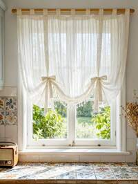 2pcs/1pc White Rose Lace Curtain Valance, Short Curtain, Drape, Coffee Curtain, Vintage Romantic Style, Sheer, Made Of Polyester Fiber, Suitable For Bedroom, Room, Living Room, Kitchen, Office, Cafe And Home Decor #1 Bestseller