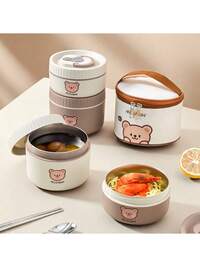 WORTHBUY 1pc 304 Stainless Steel Thermal Insulated Lunch Box, Portable Bento Box With Handle, Microwave Lunch Containers With Cute Bear Pattern, Inject Hot Water For Heating, Sealed & Leak Proof Fruit Salad Food Storage Container, Suitable For Student And Adult Use In Home, School, Doom, Office, Outdoor Camping, Picnic, Travel, Back To School #2 Bestseller