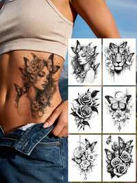 STARTTOOS Black Floral Arm Sleeve Temporary Tattoo - Y2K Girl Rose Peony Butterfly Tiger Head Pattern, Suitable For Arms, Thighs, Chest, Waist, Back, Shoulders, Neck, Collarbones, Waterproof & Realistic, DIY For Carnival, Valentine's Day, Party Gifts