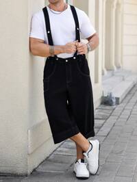 Manfinity Homme Plus Size Men's Black Denim Bib Overalls With Multiple Pockets